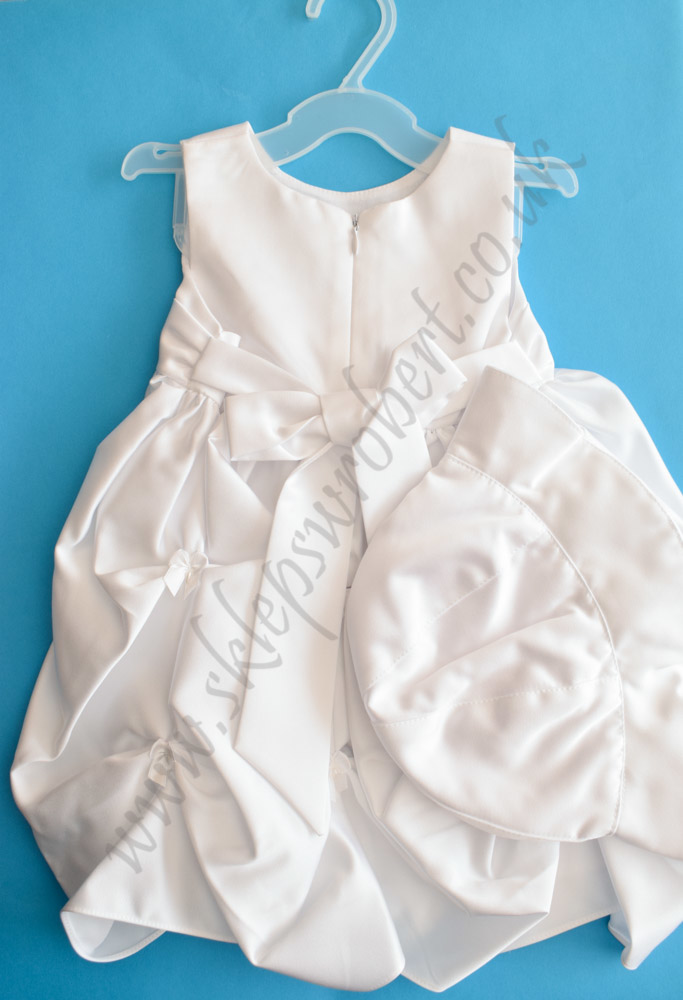 Piękna sukienka drapowana atłasowa z kapeluszem na podszewce bawełnianej.